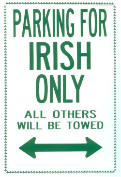 PS52 (12" x 18") Irish only Parking Sign. Made of all weather plastic with green lettering (High Impact Plastic)